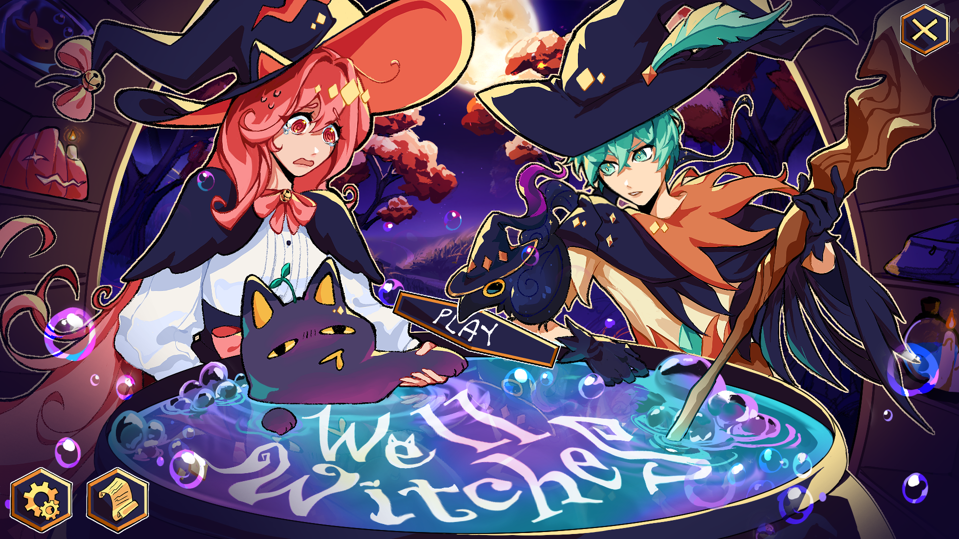 The titlescreen illustration is divided into 3 central layers for parallax: the Front (characters & cauldron), the Middle (the shelves to the sides) and the Back (the forest background).